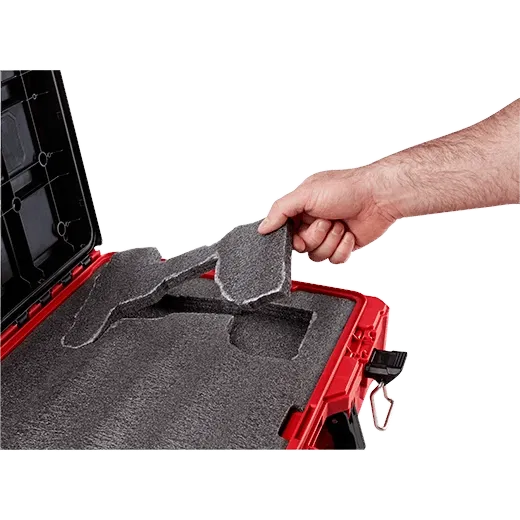 Nuestro sistema de almacenamiento modular PACKOUT™ es el más duradero y versátil de la industria. El maletín de herramientas PACKOUT™ con inserto de espuma personalizable cuenta con una base moldeada resistente a impactos que se puede conectar con todos los demás componentes del sistema PACKOUT™ mediante grapas de bloqueo integradas. Esta duradera caja de herramientas está fabricada con polímero resistente a impactos y un punto de bloqueo reforzado con metal para soportar las duras condiciones de la obra. Nuestro robusto maletín de herramientas cuenta con un sello impermeable con clasificación IP65 que protege las herramientas y accesorios de la lluvia y otros residuos en la obra. El maletín tiene una capacidad de peso de 34 kg e incluye un inserto de espuma personalizable que le permite trazar y recortar bolsillos personalizados para guardar y proteger sus herramientas de forma segura. Nuestro sistema de almacenamiento modular PACKOUT™ le permite personalizar y crear su propio sistema de almacenamiento para transportar y organizar fácilmente sus herramientas y accesorios.