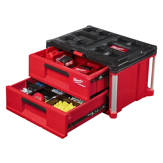 Nuestra caja de herramientas PACKOUT™ de 2 cajones tiene una capacidad de peso de 22.7 kg y una barra de seguridad con candado que permite cerrar los cajones con candado, manteniéndolos cerrados de forma segura durante el transporte. Como parte del sistema de almacenamiento modular PACKOUT™, esta caja de herramientas le permite personalizar su sistema de almacenamiento para facilitar el transporte y la organización de herramientas y accesorios. Esta caja de herramientas portátil con cajones está fabricada con polímeros resistentes a impactos, guías metálicas con rodamientos de bolas y esquinas reforzadas con metal para una máxima durabilidad en el lugar de trabajo. La caja de herramientas de 2 cajones también le permite personalizar la distribución de sus cajones con divisores de ajuste rápido (incluye un juego de divisores). El sistema de almacenamiento modular PACKOUT™ es el sistema de almacenamiento más versátil y duradero de la industria.