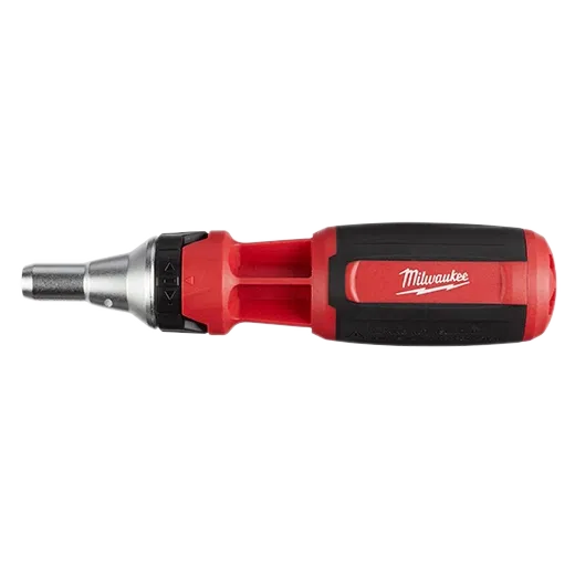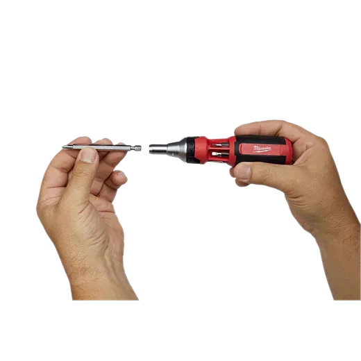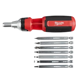 Nuestro destornillador de trinquete de boca cuadrada 9 en 1 de múltiples puntas cuenta con puntas ranuradas eléctricas intercambiables de 3-1/2" que son compatibles con herramientas eléctricas y que le otorgan la máxima versatilidad en el lugar de trabajo. El trinquete completamente de metal le proporciona un destornillado 2 veces más rápido en aplicaciones de alto torque sin sacrificar la durabilidad ni el control. El destornillador con múltiples puntas también cuenta con vástagos hexagonales listos para llave, lo que le brinda un margen adicional de maniobra. Las puntas intercambiables están maquinadas con precisión y son cromadas, lo que proporciona protección contra el óxido de grado marino y menor desgaste, gracias a lo cual tendrán la mayor durabilidad en el lugar de trabajo. El destornillador compacto cuenta con una retención magnética de las puntas, lo que le proporciona un rendimiento constante del destornillado. El destornillador de trinquete de boca cuadrada 9 en 1 de múltiples puntas de MILWAUKEE® está diseñado para el lugar de trabajo e incluye la garantía limitada de por vida de Milwaukee.