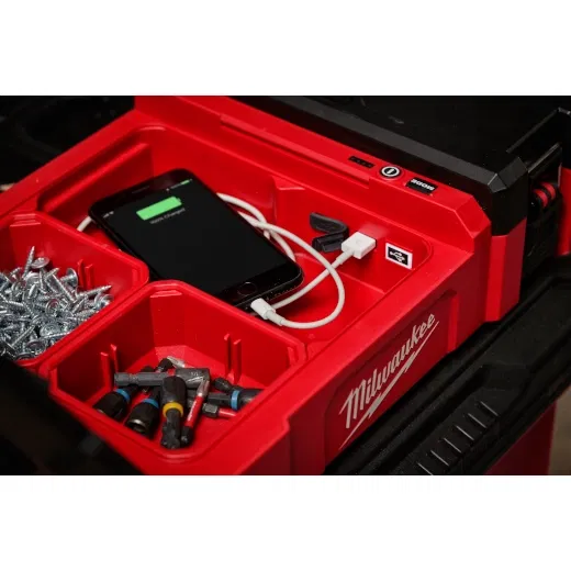 Nuestro reflector M12™ con carga USB y compatibilidad con PACKOUT™ ofrece la máxima potencia en un diseño compacto y fácil de transportar. Este reflector compacto y portátil ofrece 1400 lúmenes de salida de alta definición TRUEVIEW™ y es compatible con nuestro sistema de almacenamiento modular PACKOUT™. El cabezal puede girar 300 grados horizontalmente y 180 grados verticalmente para un control total. Con tres modos diferentes (alto, medio, bajo), la potencia y la autonomía se pueden ajustar según la tarea, con hasta 12 horas de autonomía con una batería M12™ XC 4.0. Esta luz también incluye almacenamiento integrado con dos contenedores para optimizar el espacio y la organización. Nuestro reflector M12™ con carga USB y compatibilidad con PACKOUT™ le permite cargar dispositivos con los puertos USB-A y USB-C de 2.1 A y guardar pequeños artículos en el compartimento. Diseñada para soportar las condiciones más duras, esta luz tiene protección IP54, clasificación de caídas y está cubierta con una garantía limitada de 5 años para herramientas y LED.