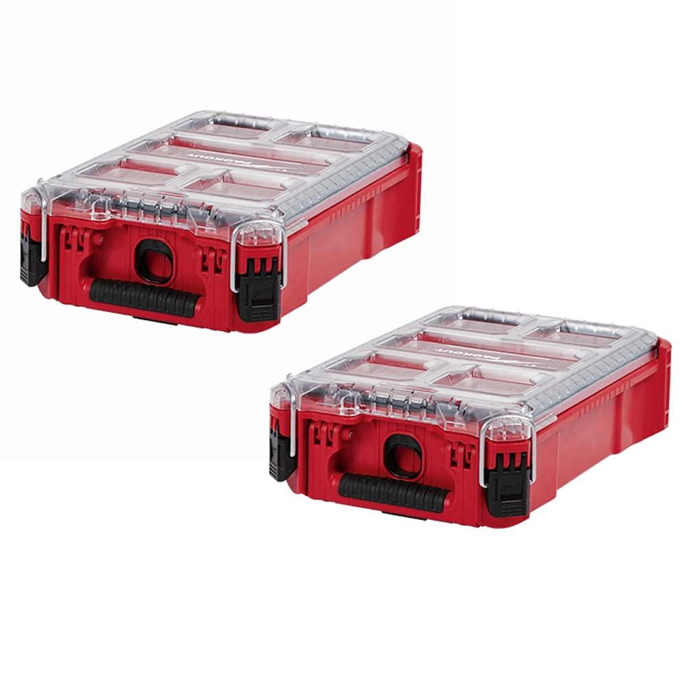 Nuestro sistema de almacenamiento modular PACKOUT™ es el más duradero y versátil de la industria. Está fabricado con polímeros resistentes a impactos y esquinas reforzadas para soportar las duras condiciones de trabajo. Todos los componentes del sistema PACKOUT™ se conectan entre si mediante grapas de bloqueo integradas. La aislación IP65 protege sus herramientas y accesorios de la lluvia y otros residuos. Las bandejas organizadoras interiores le permiten mantener el equipo organizado según sus necesidades. Las bisagras reforzadas y el asa de transporte garantizan que este combo sea fácil de transportar a donde lo necesite.